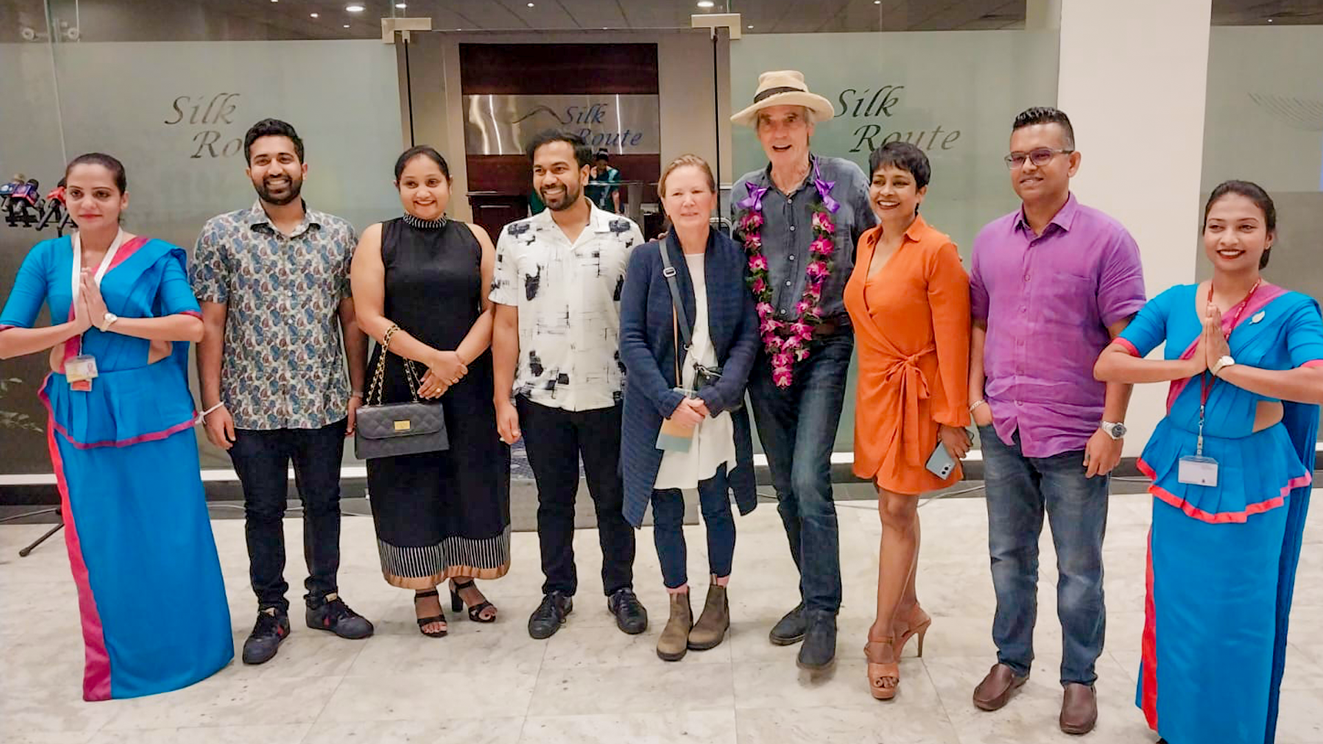Upon arrival, Irons was welcomed by Harendra Wijewardene, Deputy Director of the Tourism Promotion Bureau, and Chaminda Munasinghe, Assistant Director of the International Filmmaking and Promotion Division.